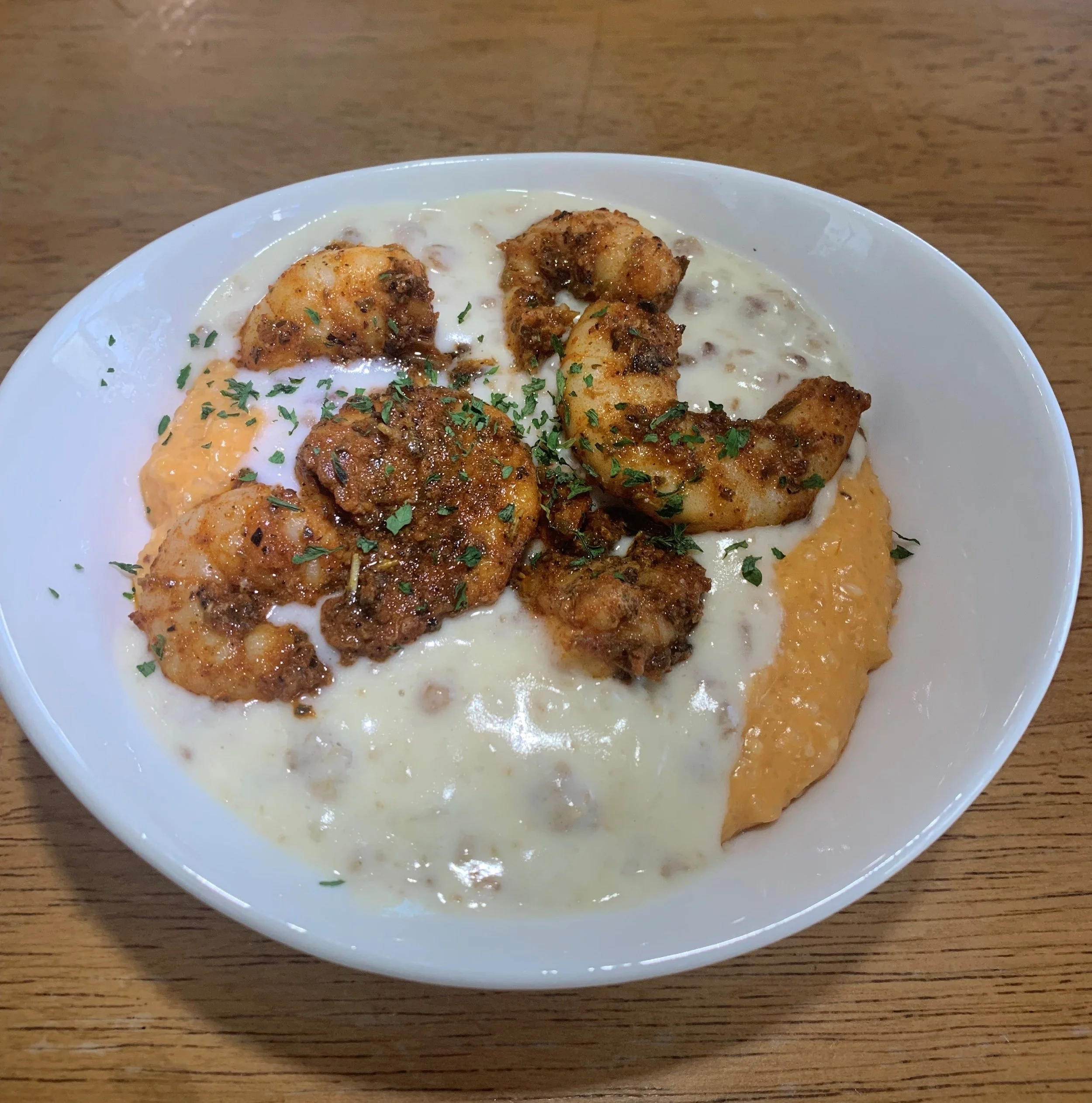 Appetizer: Clam Chowder, Main Course: Shrimp & Grits with Creamed Spinach, Dessert: Key Lime Pie